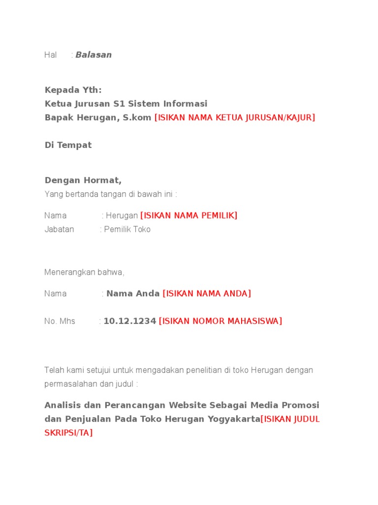 - Isi surat balasan